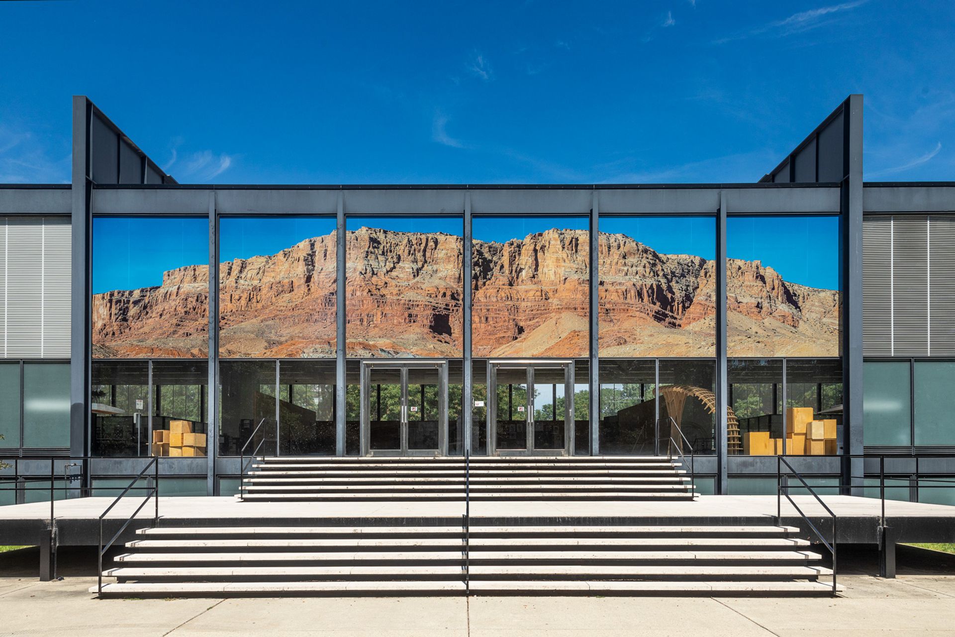 "Collage for Mies van der Rohe" is a series of large-scale photographic interventions with Mies van der Rohe’s buildings across the Chicago land. This series of interventions is based on speculative paper collages made by Mies van der Rohe in his American period from the late 1930’ and on (especially the Rasor house in Wyoming). In these Collages, Mies used landscape photographs to demonstrate the function of the windows and the way they frame nature. In this project, Assaf Evron uses Mies’ own strategy of collage and re-applies it onto his buildings, where the representation of architecture collapses into the actual architecture, where nature and architecture are welded into a surface and the fetishized transparency of Mies is transgressed.