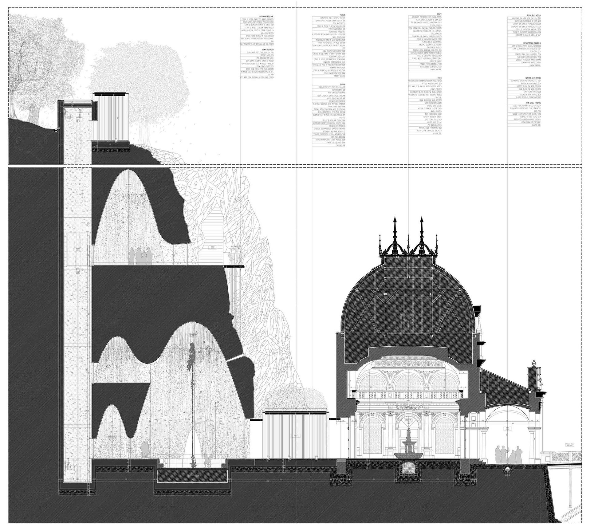 Local spa resorts face challenges due to their outdated cultural image and the disconnect between the built environment and its surroundings. These issues are central to this diploma project, which seeks to revive the historical core and propose a plan to rejuvenate the iconic identity of the Băile Herculane resort. The focus is on the former imperial baths. Consequently, the intervention area centers on the interstitial space between the structure and its landscape, particularly the rocky cliff that frames its silhouette. The solution employs two distinct approaches: subtraction and addition, ensuring that the intervention complements the historic image of the baths while preserving the site's character. Interior spaces are designed with structural principles that respect the intervention's environment, resulting in unique ceiling solutions tailored to their functions. The objective of this intervention is to integrate contemporary architecture seamlessly into the landscape and to promote awareness of architecture's role in achieving visual harmony by respecting the specificities of its environment.