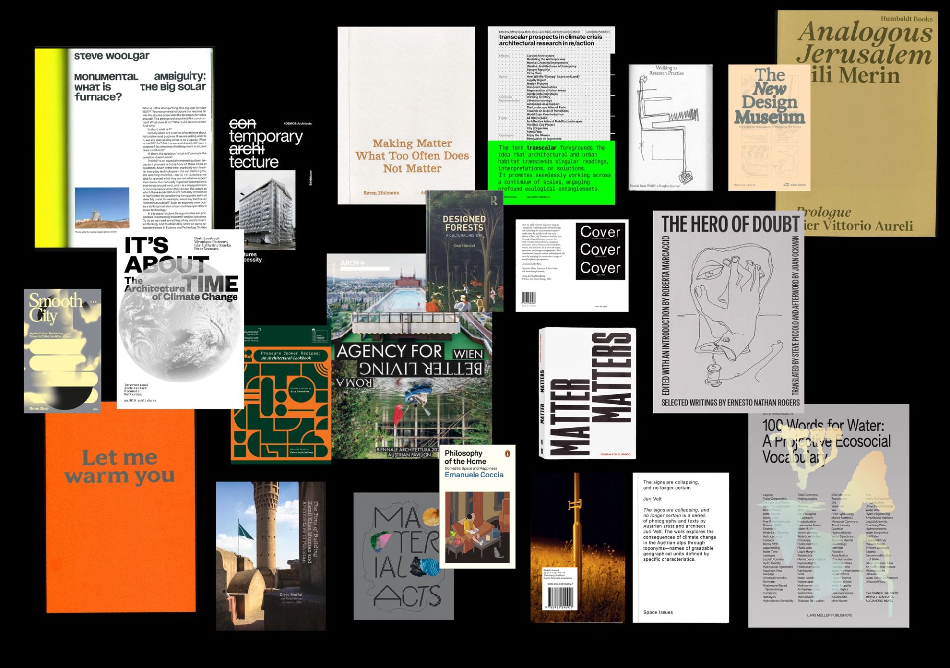 The Venice Biennale of architecture brought forth a kaleidoscope of catalogues, compendia and volumes crafted to complement the exhibition. Several of these are featured in the library — including a glossary of water from the Pavilion of Catalonia, ‘Bodytopia’ from the Nordic pavilion; an extract from Portugal's ‘Pursuing Paradise’; future speculation from the UAE; monumental ambiguity from Uzbekistan; a look on the politics and policing of Vienna's housing sector in Austria; ‘Making Matter’ from Denmark, and the Estonian Pavilion with an excerpt from its publication, Let me warm you.