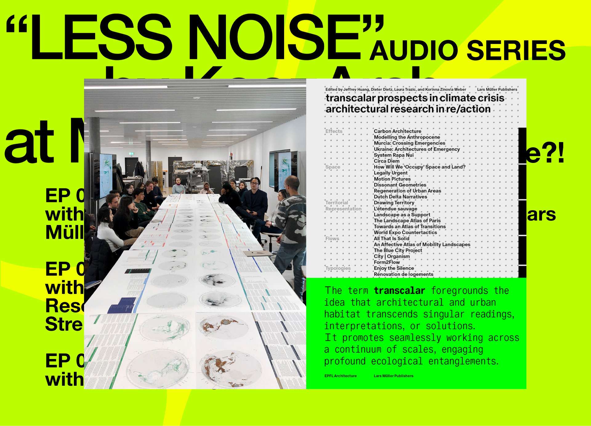 On the table, we see drawings that reflect emerging architectural sensibilities, rituals, and protocols, which illustrate new norms in architectural practice and emphasize non-extractive economies of production, care, and stewardship. The main idea is that this new Eaarth requires new forms of practice in architecture. So, the project is inherently about architectural practice, and we chose to tackle this through the most mundane spatial phenomenon, which is the office or the space within which we produce.