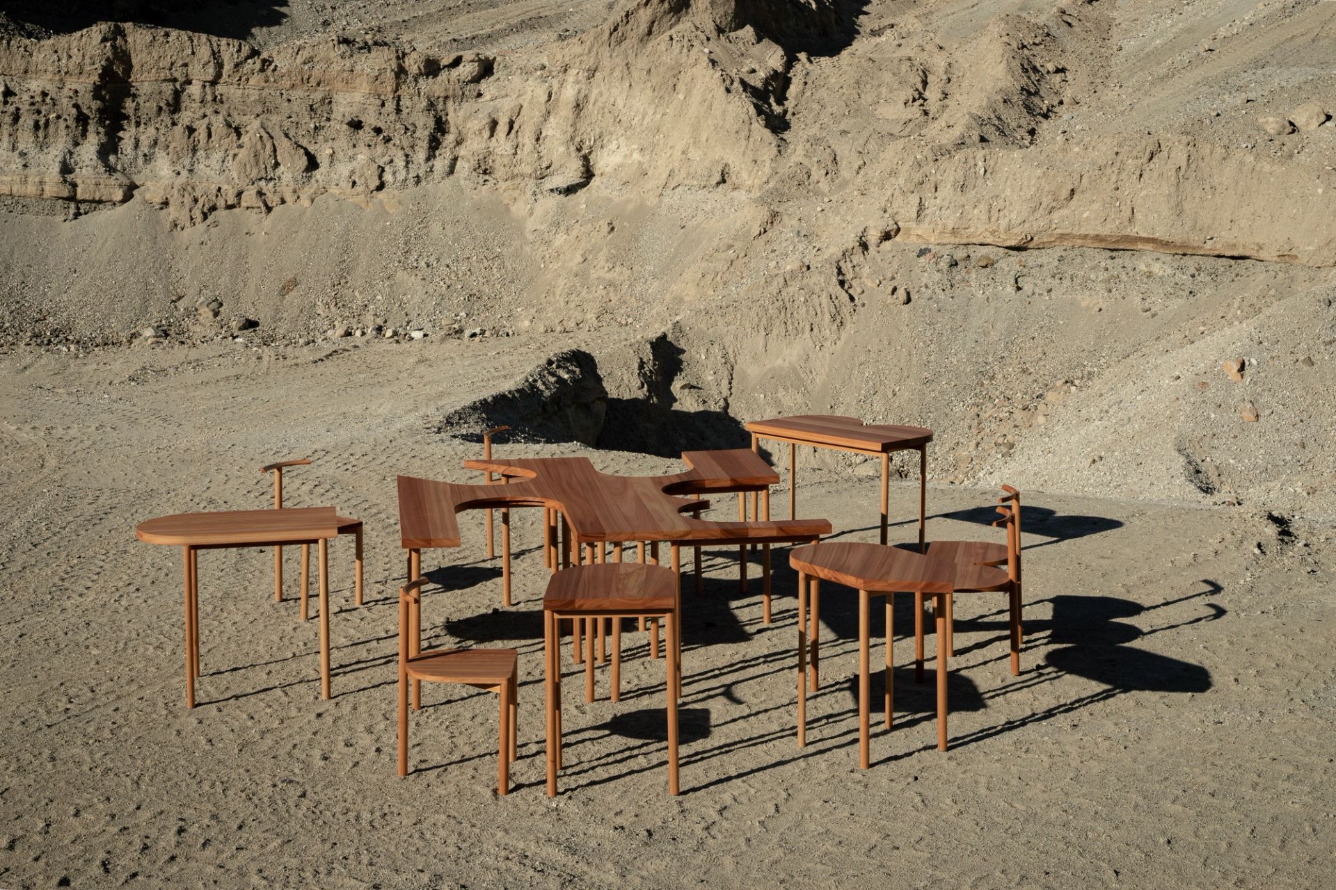 Designed in collaboration with Joselo Maderista, Tatiana Bilbao’s ¿Mesa para cuántos? envisions a table with an integrated set of chairs. Rejecting notions of standardized living, the furniture is designed to adapt to the needs and movements of the body within an ever-changing domestic choreography. Photography by Rafael Palacios Macías