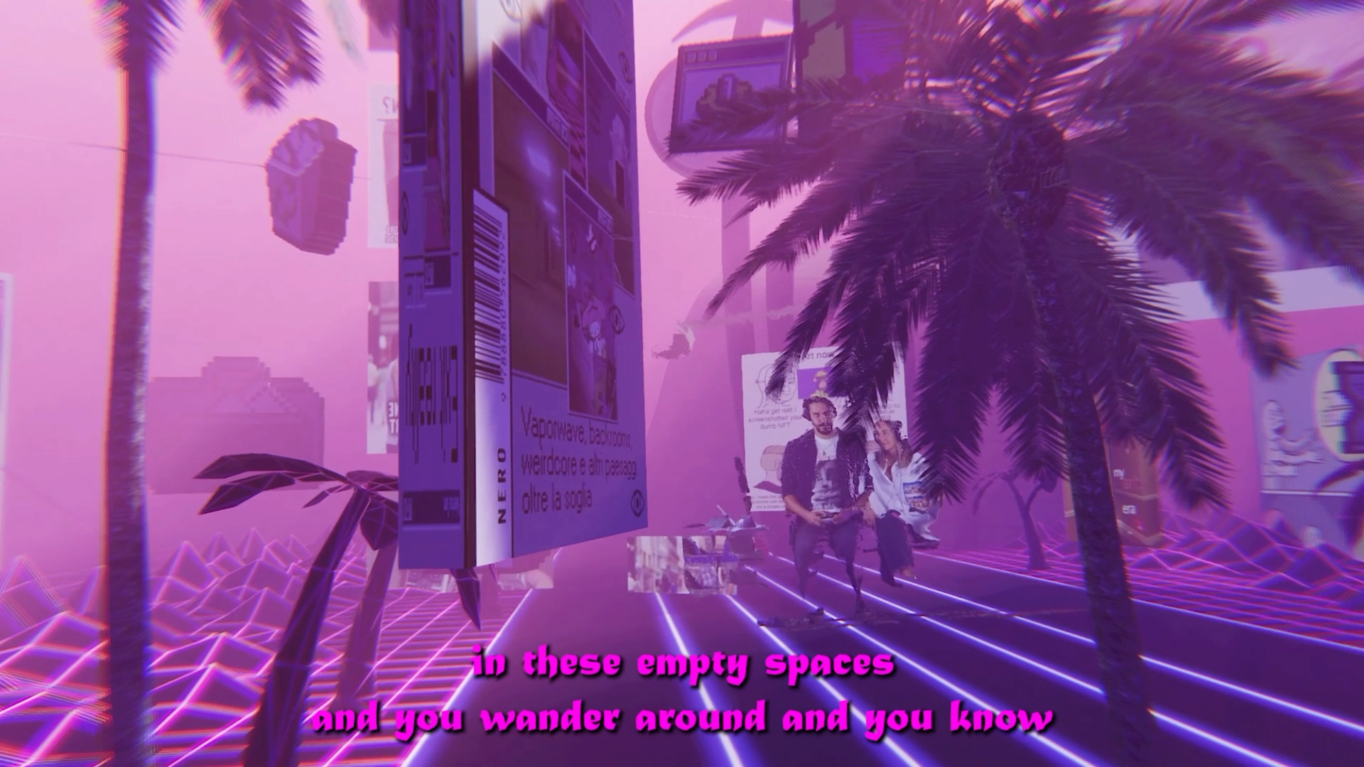 So, coming back to this idea of liminality, we feel like we’re in a space between two states, without knowing how long we’ll remain there. This is also connected to the Backrooms. You’re in a place that feels mysterious and unsafe, and you don’t know anything about what comes next. There’s a sense that this liminal condition could even become permanent. That’s one aspect. But within internet aesthetics, we also encounter other sentiments and ideas. Nostalgia is an obvious one. We’re surrounded by vaporwave elements, so nostalgia becomes a key component. What’s interesting about contemporary nostalgia is that it’s no longer just about wanting to return to the past. It’s more about mentally traveling through time. It has more to do with imagination than with memory. This means nostalgia is often projected onto times and places we never actually experienced. That’s why you find young people online — people who were born maybe twenty years ago — claiming they feel nostalgic for the 1990s. Of course, they never lived through that period. But through the traces they encounter online, they develop a sense of its atmosphere, as if they can access its vibe. They can pick up the vibe and feel nostalgic for a time they never experienced. And this is very present in many internet aesthetics.