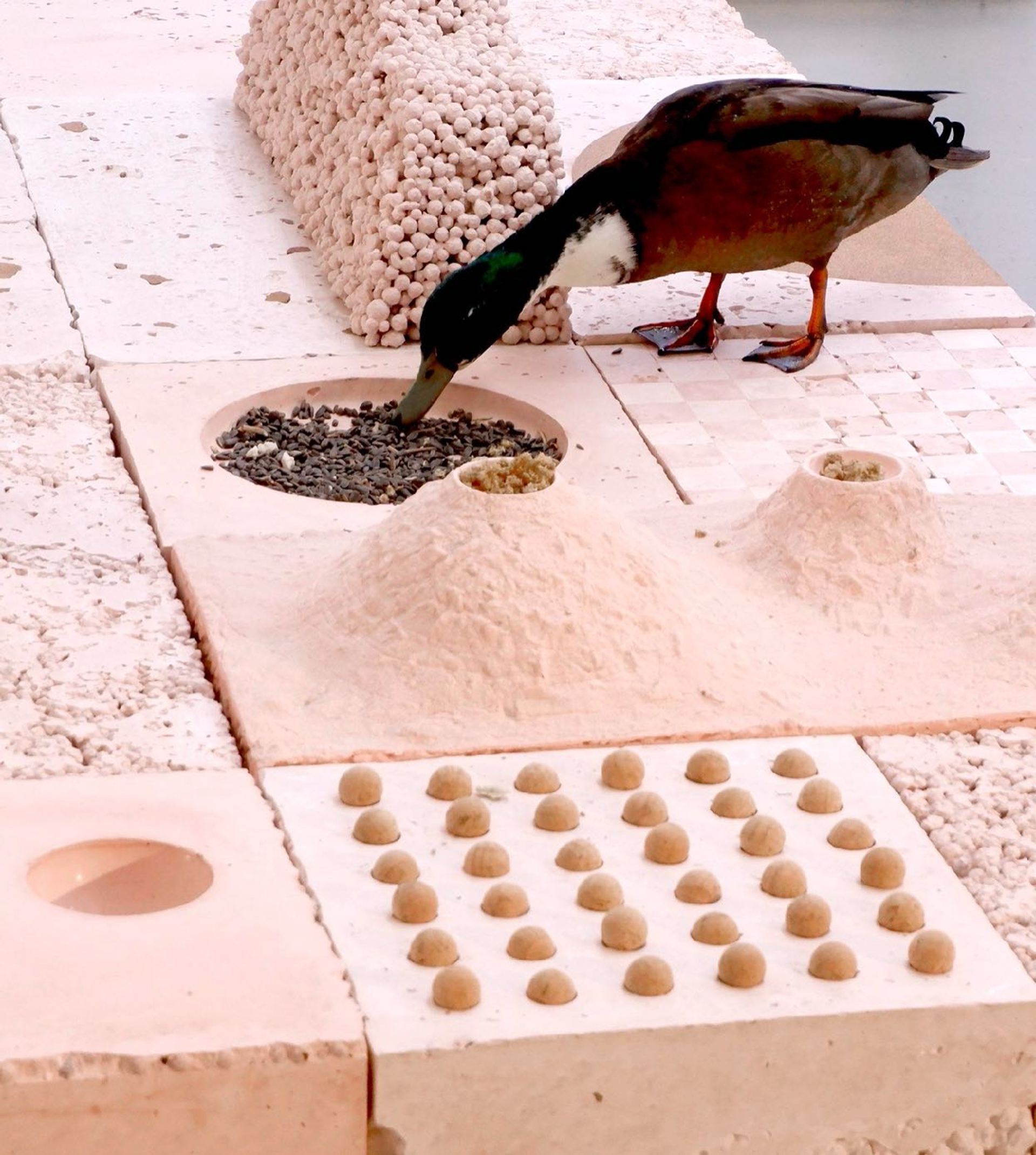 ‘The Platform for Humans and Birds’, is a modular, cast landscape, rich in affordances and possibilities of action: a place to eat, play, touch, and negotiate boundaries between our specie and others. Image © Studio Ossidiana