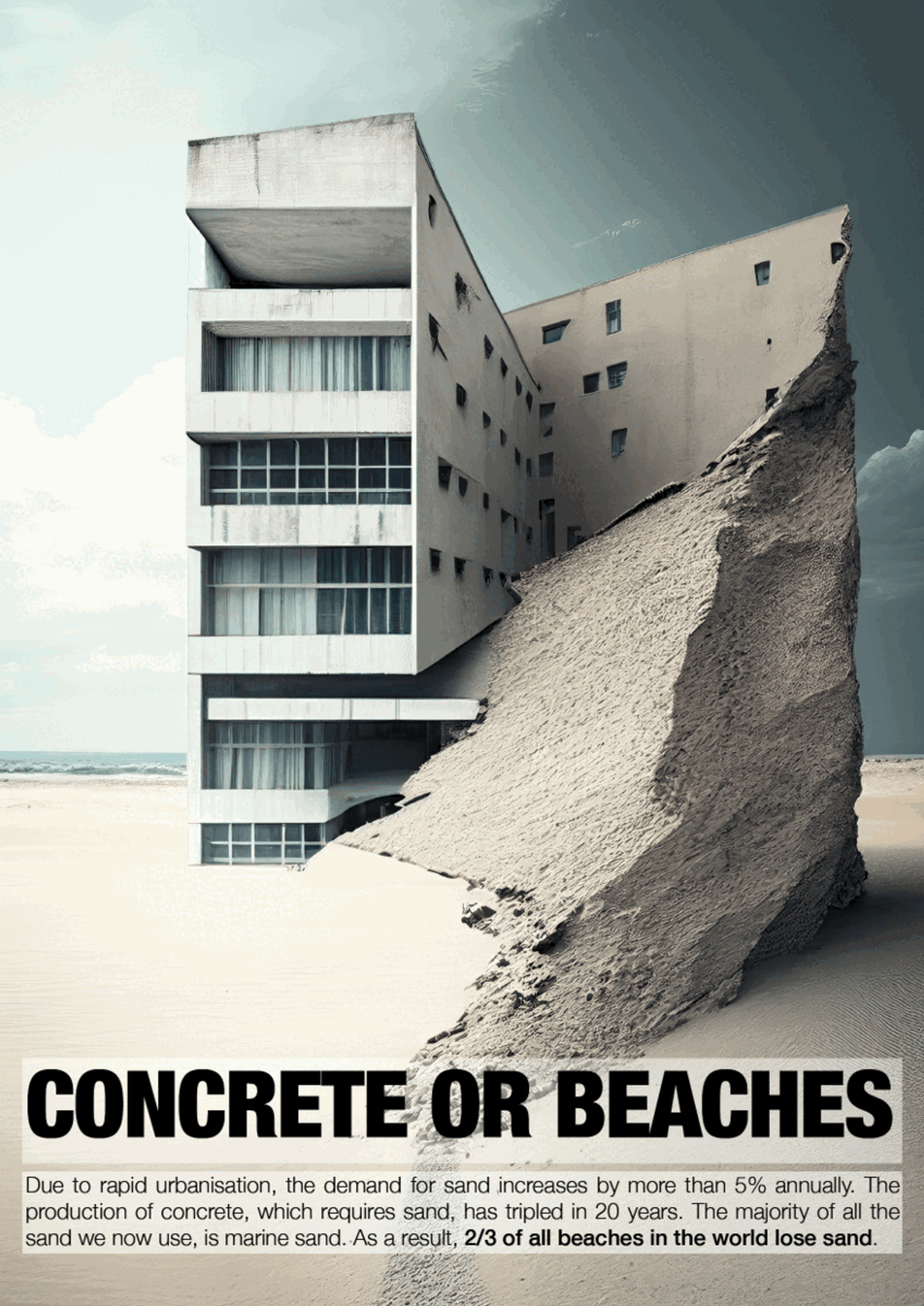 The overconsumption of sand exposes an absurdity in our society. We are building foundations to secure our future while hollowing out the planet, slowly digging away the sand beneath our feet, causing the real foundation to disappear, seems somewhat ironic. The world can't sustain one-way thinking, just as it can't sustain one-way consumption, as this leaves the world trembling on one leg, creating a shaky foundation. In the same way that the steak on your plate is finding alternatives, so is the sandwich element of the wall. What was once limited by a given is now a diverse palette of options, allowing for further considerations into local resources, climate, and the needs of people, rewinding architecture and the world ahead.