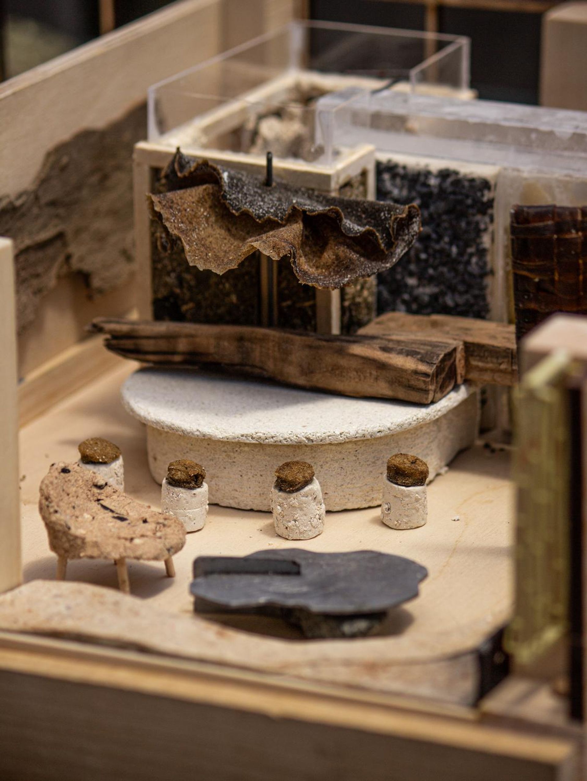 Drawing on traditional Indian philosophy, the project proposes a framework for interior design that utilizes locally foraged materials like seaweed, oyster shells, moss, and driftwood. This approach not only transforms interiors into living ecosystems, creating social and ecological connections, but is low-carbon and fosters a relationship of care and reciprocity between the space, place, and inhabitants. The project was developed within the context of Parsons School of Design, New York.