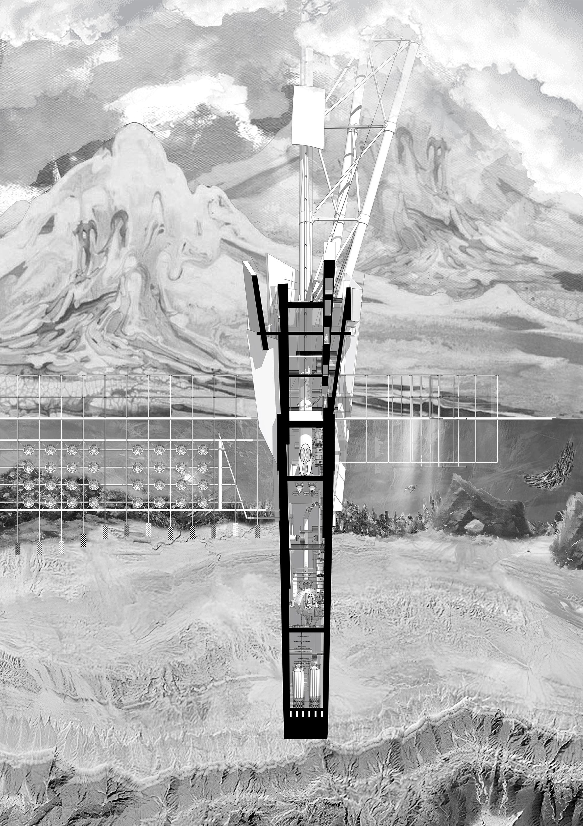 Presenting an offshore sustainable energy production center which is designed to be fully self-autonomous. Each level of this structure serves distinct functions including renewable energy systems, waste plastic transformation facilities, and public spaces. These functions are interwoven across all levels, which are connected by reinforced concrete and steel decks. One of the primary objectives of "Ecstatic Nexum[s]"; is to create an environment that pioneers sustainable energy development, heralding a future of innovation and sustainability. This project was developed within the context of Middle East Technical University.