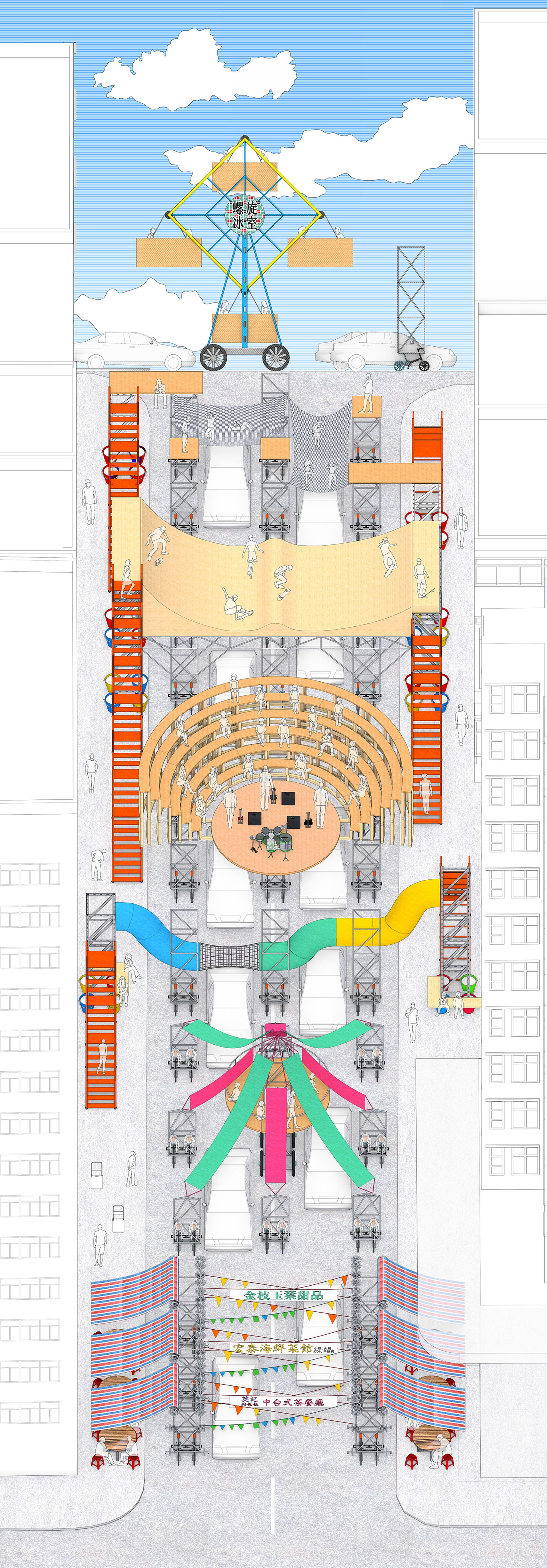 This visionary urban design concept reimagines the public infrastructure as an open, adaptable system. The modular 'urban surface' allows for diverse uses and organic growth to meet the evolving needs of the public space - street community. Key elements like flexible component, permeable borders, and light constructions with vertical capacity facilitate social interaction, small social activities, and a constantly changing palette of associations. By designing for assembly, disassembly, and reassembly, this project transforms the urban landscape into a dynamic 'lost paradise' that can be continuously reshaped to foster street community.
