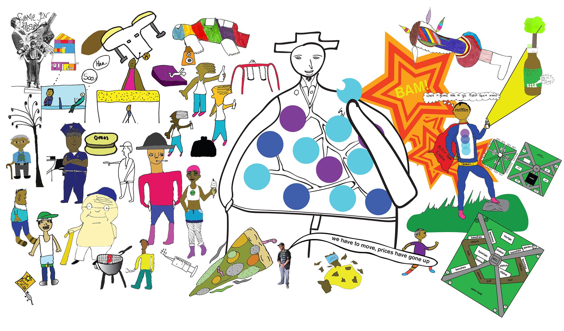 Process drawings, overall schematic design, and completed first phases of HECTOR’s landscape design for Philadelphia’s Mifflin Square Park in collaboration with SEAMAAC, Cambodian Association of Greater Philadelphia, Bhutanese American Organization—Philadelphia, Greater Philadelphia Community Alliance, Friends of Mifflin Square Park, and Mural Arts Philadephia Restored Spaces, 2016-2022. Credit: HECTOR urban design.