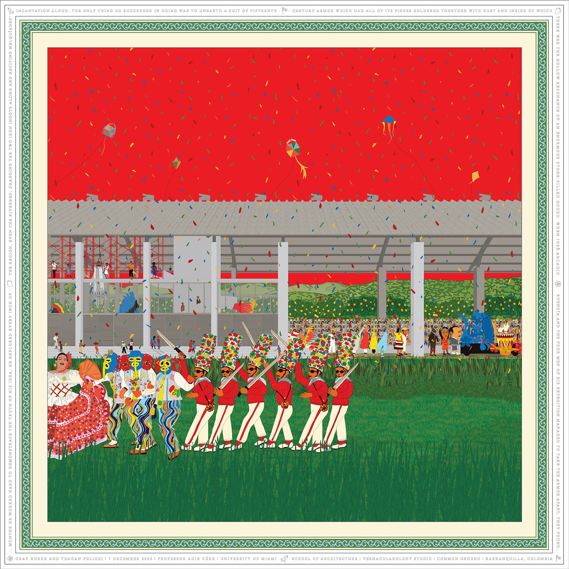 Mundo Momo proposes Barranquilla, Colombia’s first permanent infrastructure dedicated to the annual Carnival, the city’s most important folkloric celebration. Inspired by the beauty of the Carnival traditions, the building houses costume workshops, float fabrication spaces, and dance studios. The project is deeply rooted in its site, addressing challenges of urban continuity and climate resiliency through use of vernacular materials and design principles. Mundo Momo aims to provide the city of Barranquilla with a new level of innovation to expand the Carnival while preserving its rich history.