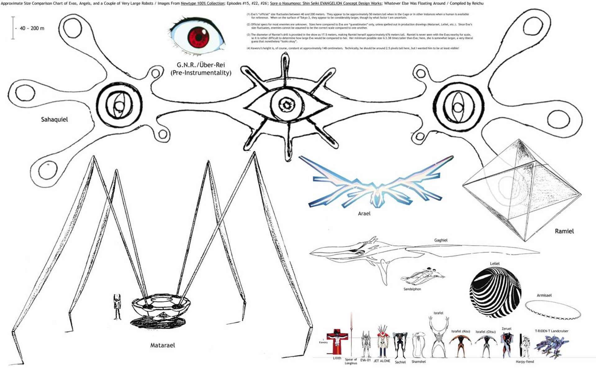 Approximate Size Comparison Chart of Evas, Angels and a Couple of Very Large Robots, image by Reichu, date of creation unknown.