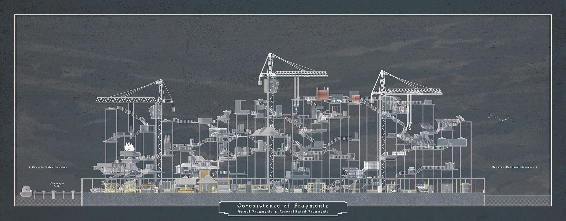 There exists a synergy between the project aspiration and Pulau Semakau – demolished buildings are recreated through micronarratives, reclaiming both the memories and the context where the memories took place. The architectural fragments co-exist on a standalone reclaimed island, an archive of architectural ghosts, constructed as a counterpoint to Pulau Semakau.