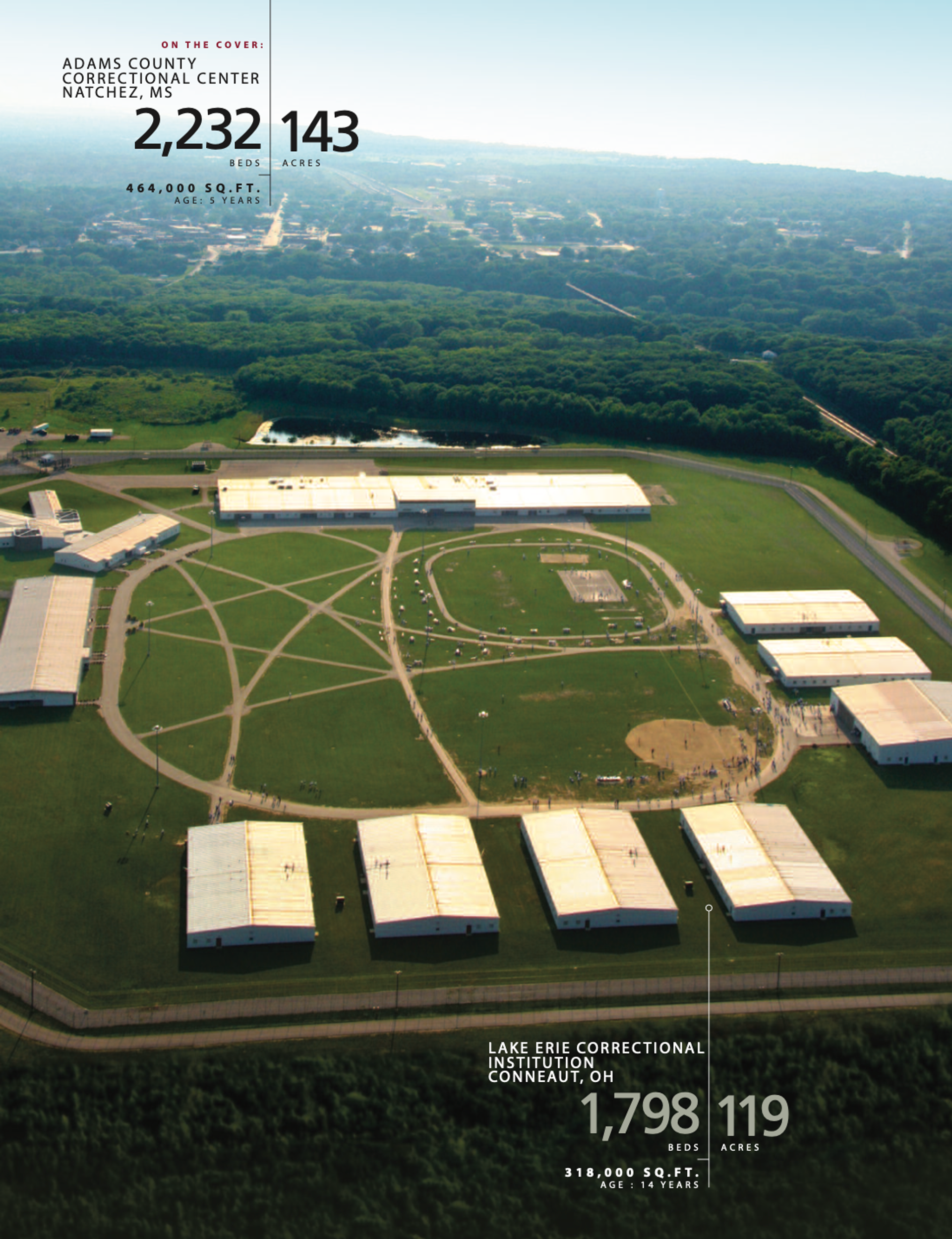 In CCA’s 2012 annual letter to shareholders announcing its new tax status, the company put forth a markedly different image of the company: as $3.6 billion in fixed assets. Alongside the narrative of REIT-generated double-digit growth, the company doubled down on its commitment to real estate with sterile and glossy aerial photographs of its properties—described not according to function but to acreage, square footage, number of beds, and age. These specifications were part of a new language aimed at repackaging CCA’s facilities as attractive investment opportunities. 57 The company’s ability to build shareholder value was thus intimately connected to its ability to build a stable real estate portfolio. CCA’s portfolio was sold as a “just-in-time inventory” of leasable space— one that was integral to the growth model of the company. The inventory was intended to accommodate the immediate and future needs of government partners and policy makers, thereby linking what the company offers (and what the company is) to whatever political, economic, and cultural climate it faces.