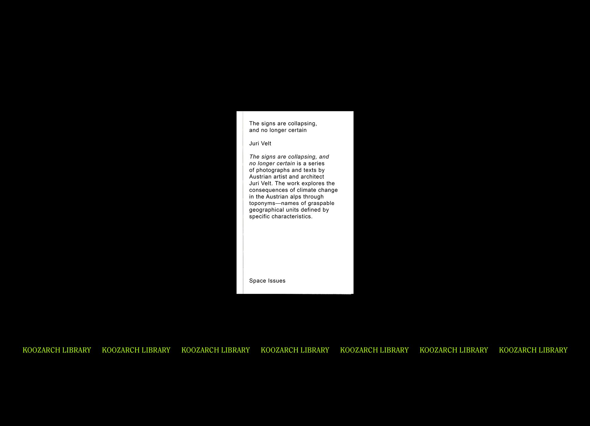 KOOZ Beyond the use of words, the architectural discipline heavily relies on drawing as another form of language. Yet your books don’t rely on that, to the point that architect, verb is totally devoid of any kind of architectural drawing or representation. Why so?