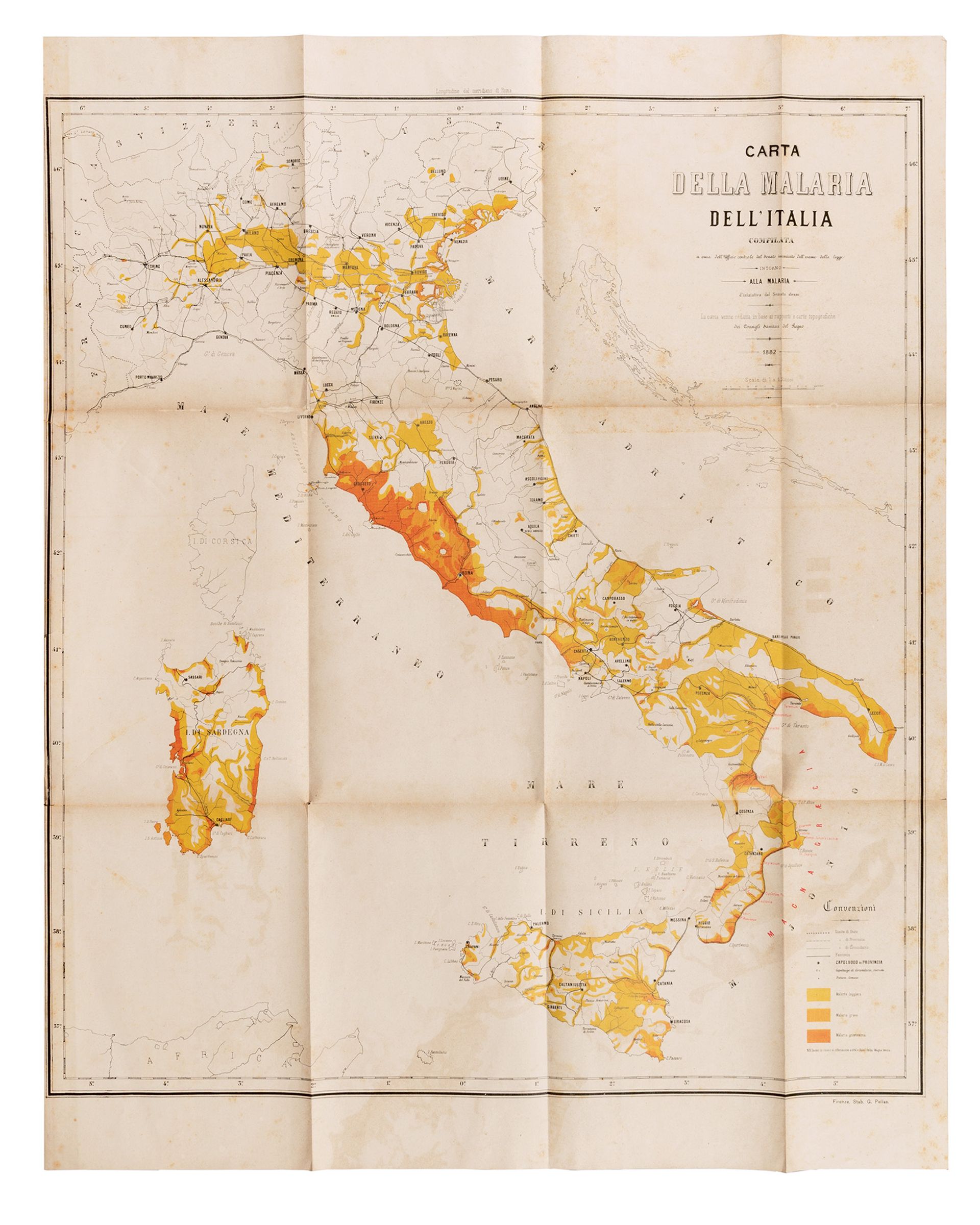 Luigi Torelli’s map of malaria in Italy, 1882